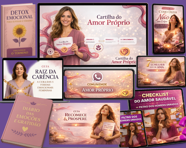 Comece hoje mesmo a aplicar o passo a passo da Cartilha do Amor Próprio e torne-se uma mulher completa, segura e livre emocionalmente.